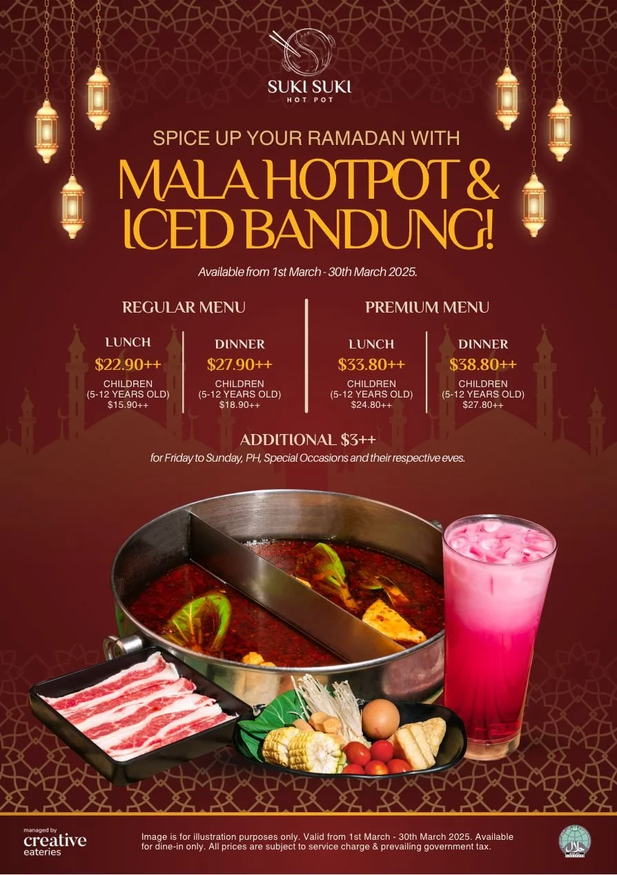 This Ramadan, treat yourself to something special at Suki-Suki Hotpot with their exclusive Iftar buffet menu, available from March 1 to 30, 2025. Guest can enjoy special spicy Mala soup base, it's a perfect blend of heat and flavor for the season. Paired with the sweet refreshment of Iced Bandung. A combo you won't want to miss.